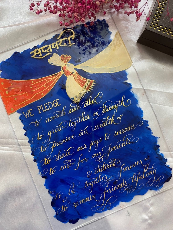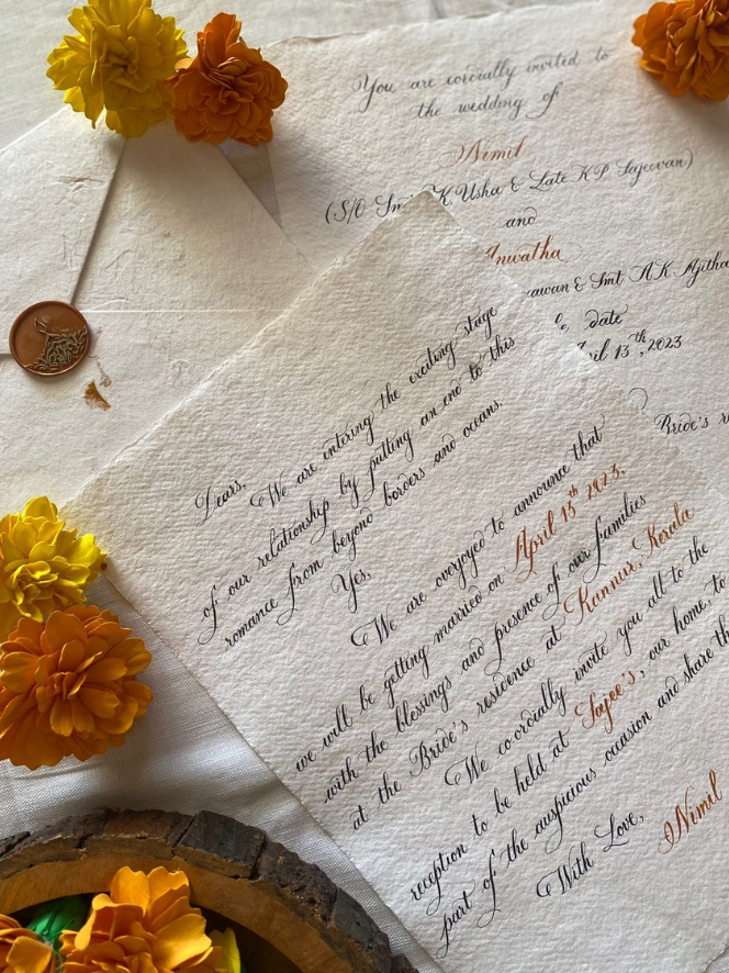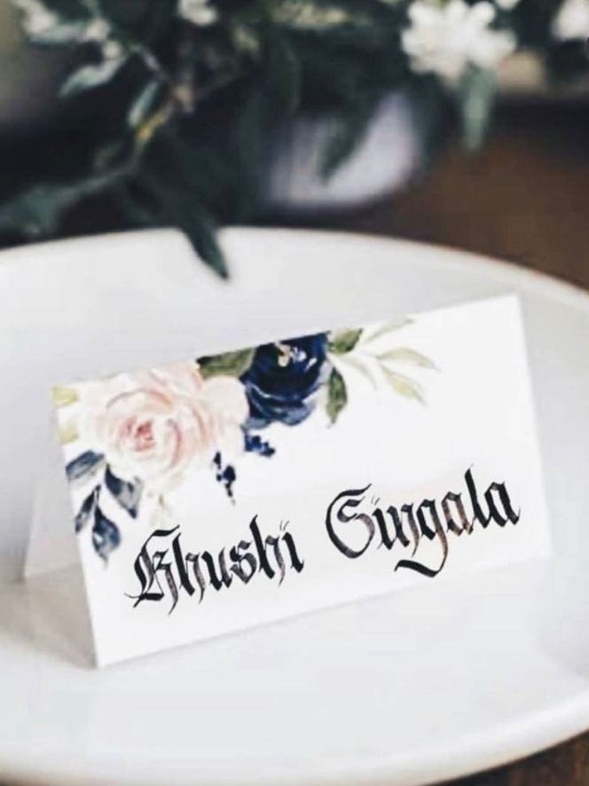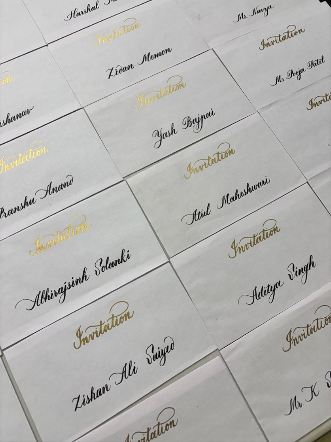 From handwritten wedding invites and envelope addressing to personalized vows, welcome signboards, and place cards, we craft every detail.