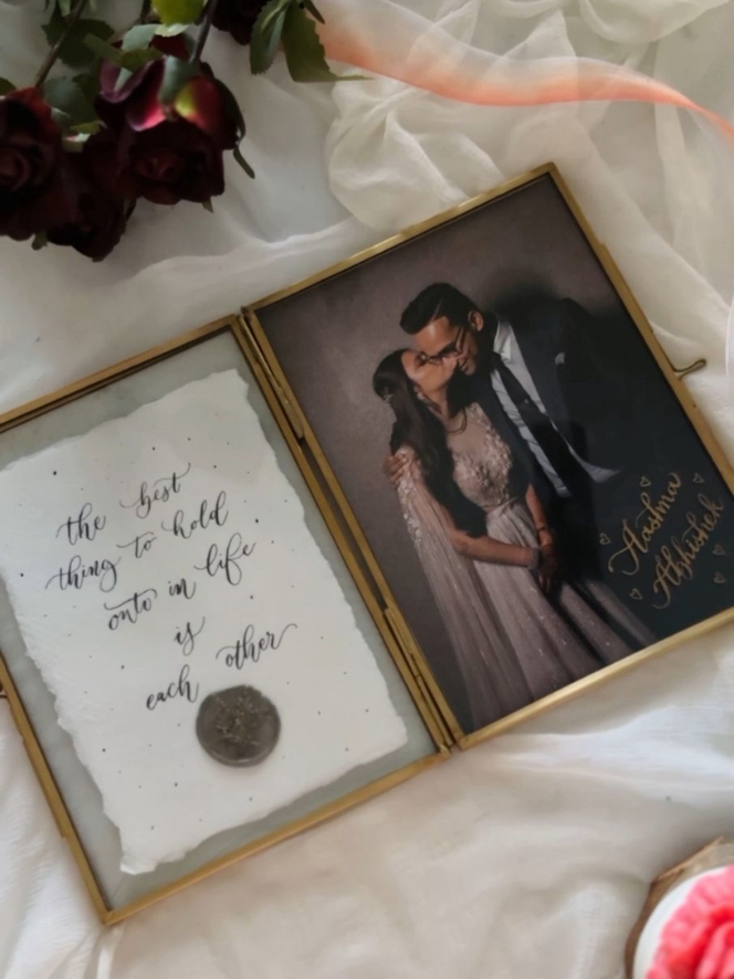 An extra touch of love can be added with heartfelt letters from the bride and groom, beautifully penned by hand.
