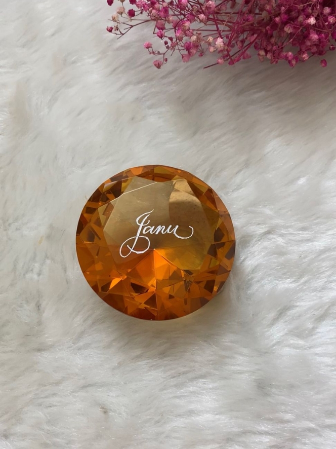 Engraving onsite means, I will be using special pens and tools to write names directly onto crystals, glasses, perfume bottles, acrylic coasters and many more surfaces.